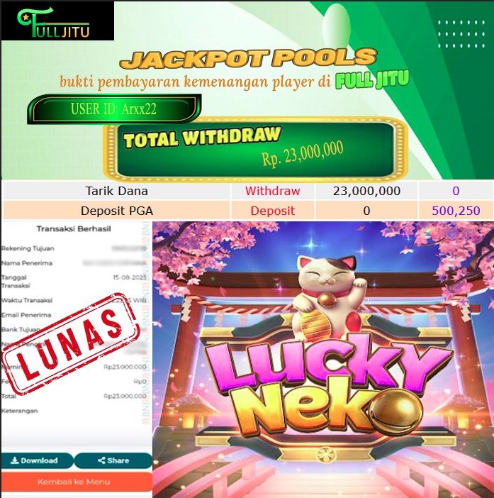 Selamat kepada User id : BO****** Telah berhasil mendapatkan kemenangan besar pada permainan THAILAND CITY POOLS kemenangan Sebesar Rp. 10.000.000, Setelah mengisi formulir withdraw dengan kurung waktu hanya 5 - 10 menit pihak fulljitu sudah melakukan transfer kepada pemilik Userid dan dana sudah dapat di cairkan oleh pemenang. Bukti pembayaran yang kami berikan merupakan bukti pembayaran yang SAH / VALID yang langung di dapatkan melaui tanda transfer transaksi dari Bank yang di tuju.