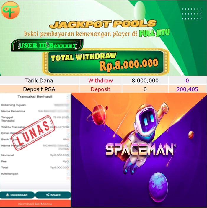 Selamat kepada User id : BU*** Telah berhasil mendapatkan kemenangan besar pada permainan THAILAND CITY POOLS kemenangan Sebesar Rp. 6.000.000, Setelah mengisi formulir withdraw dengan kurung waktu hanya 5 - 10 menit pihak fulljitu sudah melakukan transfer kepada pemilik Userid dan dana sudah dapat di cairkan oleh pemenang. Bukti pembayaran yang kami berikan merupakan bukti pembayaran yang SAH / VALID yang langung di dapatkan melaui tanda transfer transaksi dari Bank yang di tuju.