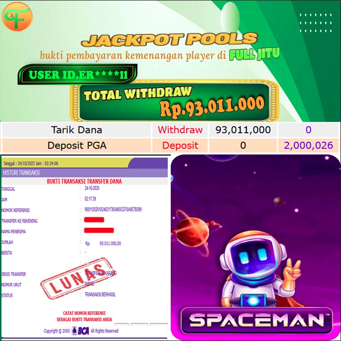 Selamat kepada User id : RE*** Telah berhasil mendapatkan kemenangan besar pada permainan SWEET BONANZA 1000 kemenangan Sebesar Rp. 18.000.000, Setelah mengisi formulir withdraw dengan kurung waktu hanya 5 - 10 menit pihak fulljitu sudah melakukan transfer kepada pemilik Userid dan dana sudah dapat di cairkan oleh pemenang. Bukti pembayaran yang kami berikan merupakan bukti pembayaran yang SAH / VALID yang langung di dapatkan melaui tanda transfer transaksi dari Bank yang di tuju.