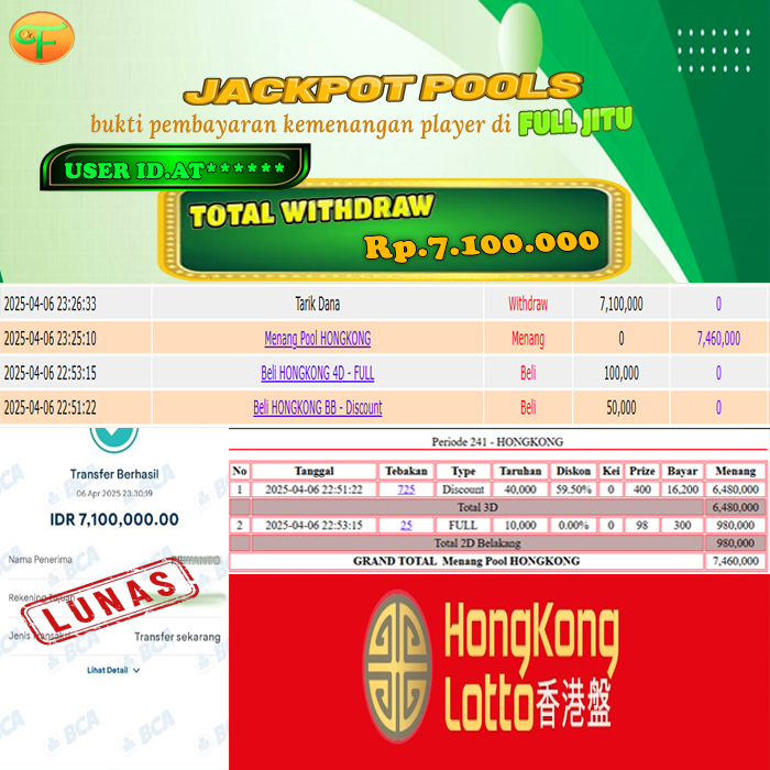 Selamat kepada User id : AD***** Telah berhasil mendapatkan kemenangan besar pada permainan PYRAMID BONANZA kemenangan Sebesar Rp. 21.000.000, Setelah mengisi formulir withdraw dengan kurung waktu hanya 5 - 10 menit pihak fulljitu sudah melakukan transfer kepada pemilik Userid dan dana sudah dapat di cairkan oleh pemenang. Bukti pembayaran yang kami berikan merupakan bukti pembayaran yang SAH / VALID yang langung di dapatkan melaui tanda transfer transaksi dari Bank yang di tuju.