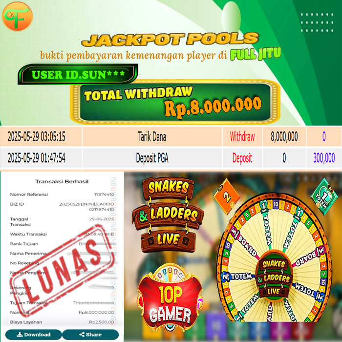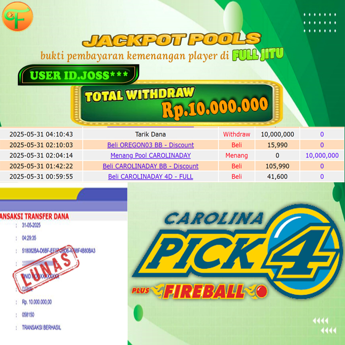 Selamat kepada User id : KH****** Telah berhasil mendapatkan kemenangan besar pada permainan STARLIGHT PRINCESS 1000 kemenangan Sebesar Rp. 7.000.000, Setelah mengisi formulir withdraw dengan kurung waktu hanya 5 - 10 menit pihak fulljitu sudah melakukan transfer kepada pemilik Userid dan dana sudah dapat di cairkan oleh pemenang. Bukti pembayaran yang kami berikan merupakan bukti pembayaran yang SAH / VALID yang langung di dapatkan melaui tanda transfer transaksi dari Bank yang di tuju.