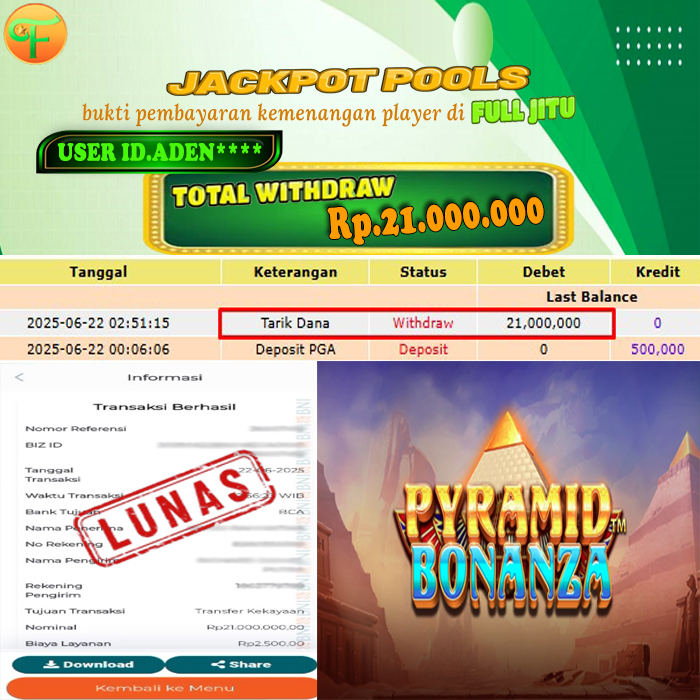 Selamat kepada User id : PR******* Telah berhasil mendapatkan kemenangan besar pada permainan SWEET BONANZA kemenangan Sebesar Rp. 10.000.000, Setelah mengisi formulir withdraw dengan kurung waktu hanya 5 - 10 menit pihak fulljitu sudah melakukan transfer kepada pemilik Userid dan dana sudah dapat di cairkan oleh pemenang. Bukti pembayaran yang kami berikan merupakan bukti pembayaran yang SAH / VALID yang langung di dapatkan melaui tanda transfer transaksi dari Bank yang di tuju.