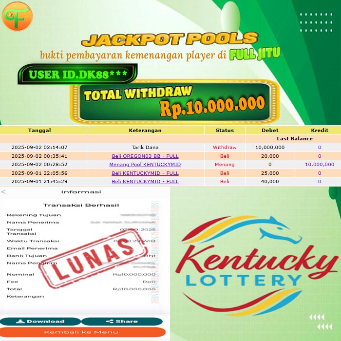 Selamat kepada User id : GE********* Telah berhasil mendapatkan kemenangan besar pada permainan WILD BANDITO kemenangan Sebesar Rp. 5.000.000, Setelah mengisi formulir withdraw dengan kurung waktu hanya 5 - 10 menit pihak fulljitu sudah melakukan transfer kepada pemilik Userid dan dana sudah dapat di cairkan oleh pemenang. Bukti pembayaran yang kami berikan merupakan bukti pembayaran yang SAH / VALID yang langung di dapatkan melaui tanda transfer transaksi dari Bank yang di tuju.