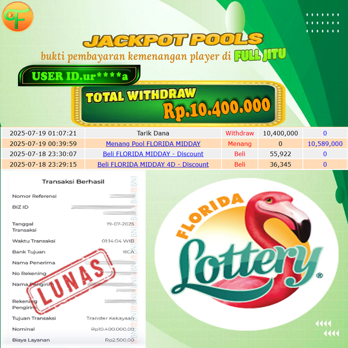 Selamat kepada User id : SE****** Telah berhasil mendapatkan kemenangan besar pada permainan PG SOFT MAHJONG WAYS kemenangan Sebesar Rp. 10.000.000, Setelah mengisi formulir withdraw dengan kurung waktu hanya 5 - 10 menit pihak fulljitu sudah melakukan transfer kepada pemilik Userid dan dana sudah dapat di cairkan oleh pemenang. Bukti pembayaran yang kami berikan merupakan bukti pembayaran yang SAH / VALID yang langung di dapatkan melaui tanda transfer transaksi dari Bank yang di tuju.