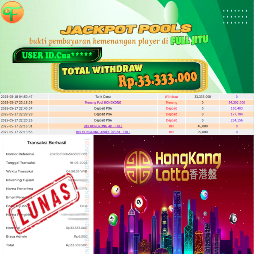 Kami mengucapakan banyak Terima Kasih Kepada pemenang karena sudah mempercayakan kami sebagai Bandar Tepercaya yang membayar semua kemenangan member hingga lunas.