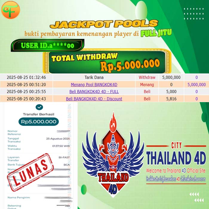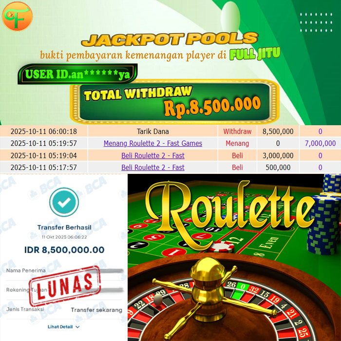 Selamat kepada User id : DI**** Telah berhasil mendapatkan kemenangan besar pada permainan MAHJONG WINS 3 BLACK SCATTER SLOT GACOR kemenangan Sebesar Rp. 6.527.500, Setelah mengisi formulir withdraw dengan kurung waktu hanya 5 - 10 menit pihak fulljitu sudah melakukan transfer kepada pemilik Userid dan dana sudah dapat di cairkan oleh pemenang. Bukti pembayaran yang kami berikan merupakan bukti pembayaran yang SAH / VALID yang langung di dapatkan melaui tanda transfer transaksi dari Bank yang di tuju.
