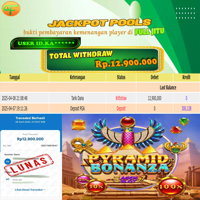 Selamat kepada User id : MA****** Telah berhasil mendapatkan kemenangan besar pada permainan SPACEMAN kemenangan Sebesar Rp. 8.350.000, Setelah mengisi formulir withdraw dengan kurung waktu hanya 5 - 10 menit pihak fulljitu sudah melakukan transfer kepada pemilik Userid dan dana sudah dapat di cairkan oleh pemenang. Bukti pembayaran yang kami berikan merupakan bukti pembayaran yang SAH / VALID yang langung di dapatkan melaui tanda transfer transaksi dari Bank yang di tuju.