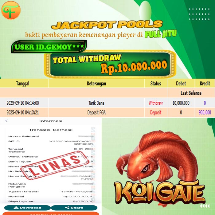 Selamat Kepada Member HTTPS://FULLJITU.COM KOI GATE User id GE*********