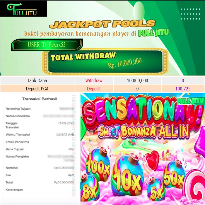 Selamat Kepada Member HTTPS://FULLJITU.COM SWEET BONANZA 1000 User id PE*****