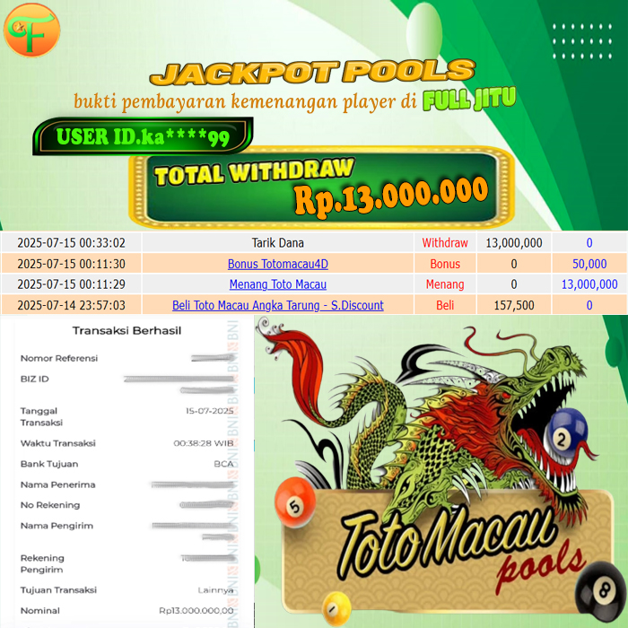 Selamat Kepada Member HTTPS://FULLJITU.COM TOTO MACAU 4D User id KA******