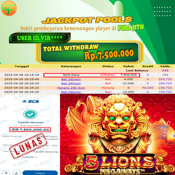 HTTPS://FULLJITU.COM JACKPOT 5 LION MEGAWAYS Rp. 7.500.000,- LUNAS